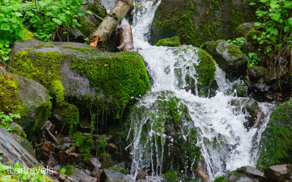 Covered in layers, I made the lovely trek though the mist to catch the top of the fall. If you decide to stop here on your next trip to Oregon, I recommend some good hiking boots and weatherproofing your camera. There were a few switchbacks and the weather had eaten away at some of the trail, raising the difficulty level slightly. However, many of the locals were wearing their usual sneakers and strolling with coffee in hand, so it’s not necessarily too high in intensity. With the slick ground and narrow trail on the incline, this could also be a good place to use a hiking stick if you like to utilize those.