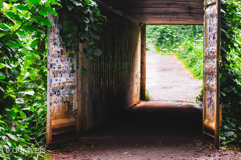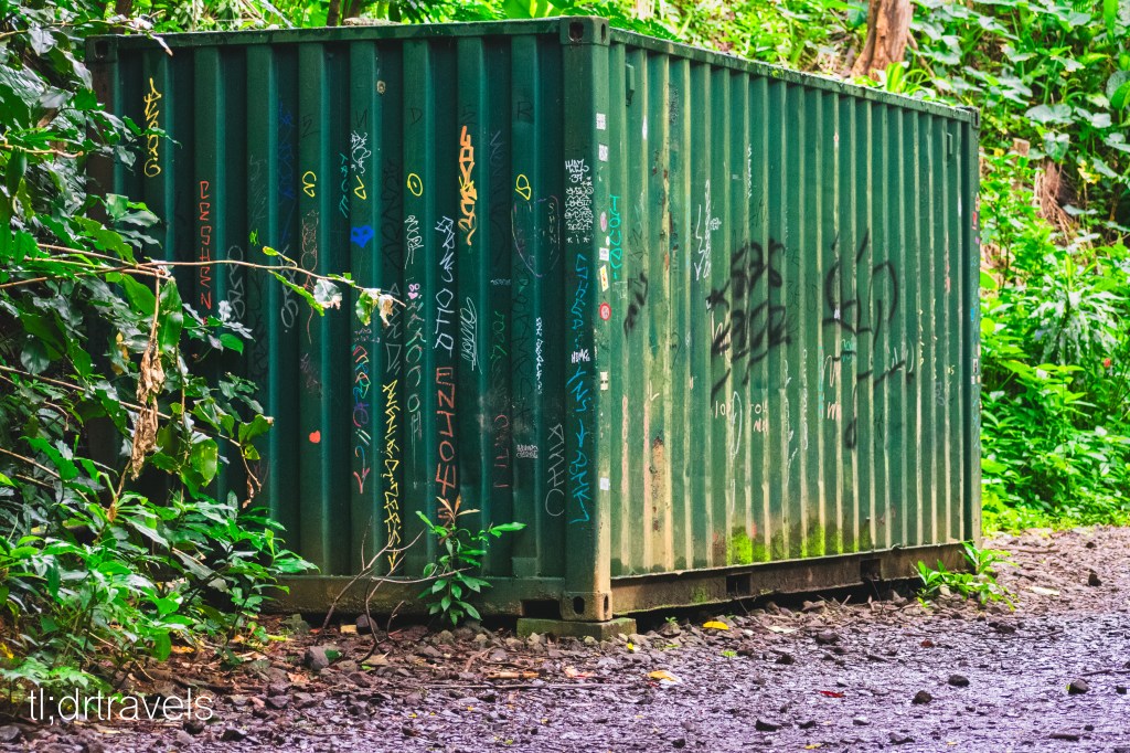 There are a few noteworthy places along the hike to stop and take photos, should anyone decide they don’t want to make the full journey to the waterfall. In fact, the first portion of the hike, which takes you to this beautiful scene (pictured next) and shipping containers (pictured above), is mostly paved and flat, making it ideal for most novice hikers.