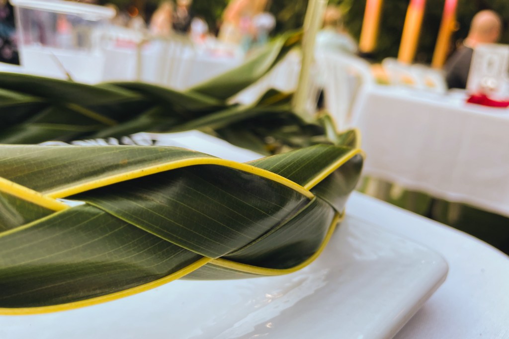 Guests are encouraged to stay away from their tables and participate in the various activities on the lawn, while the band plays. The dancers set-up several spots where guests can make a lei bracelet, braid a palm leaf headband, and learn a little ukulele.