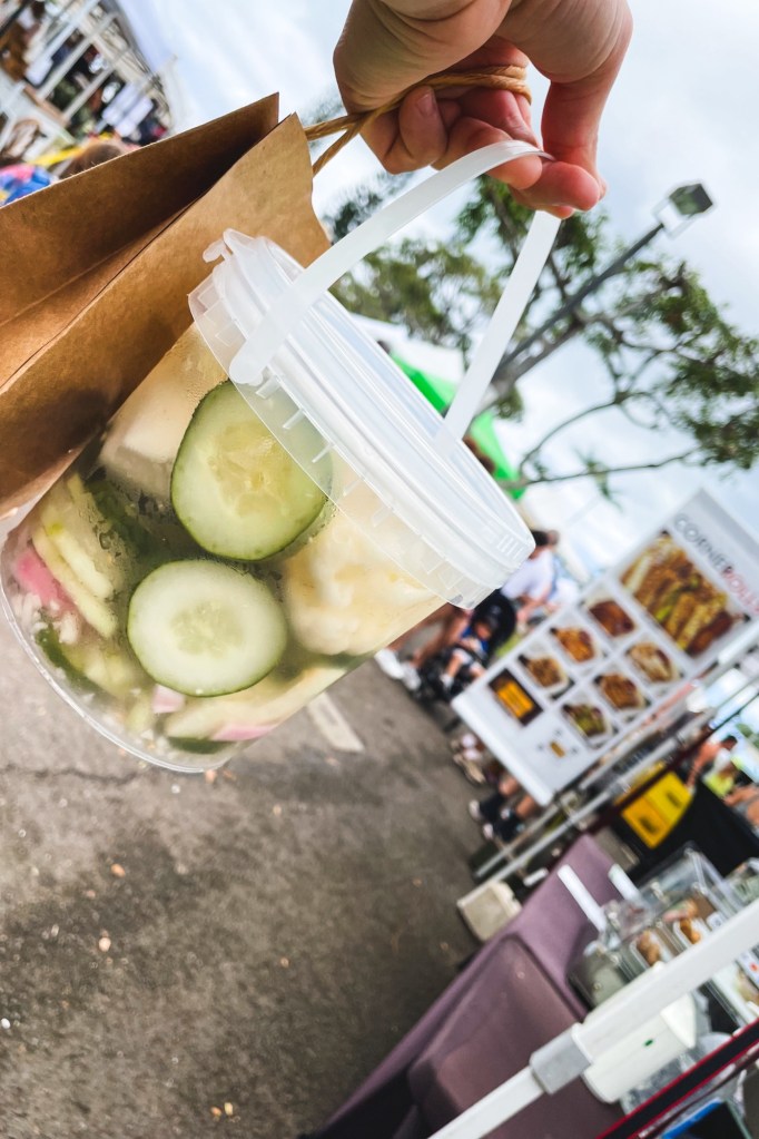 I didn’t see a meat or cow dairy vendor, but those are pretty rare (in my experience) at farmers markets. I did, however, see a seafood/crab stall as well as a coconut milk tent. There was a great selection of fresh fruit and various spices, bread, and more.